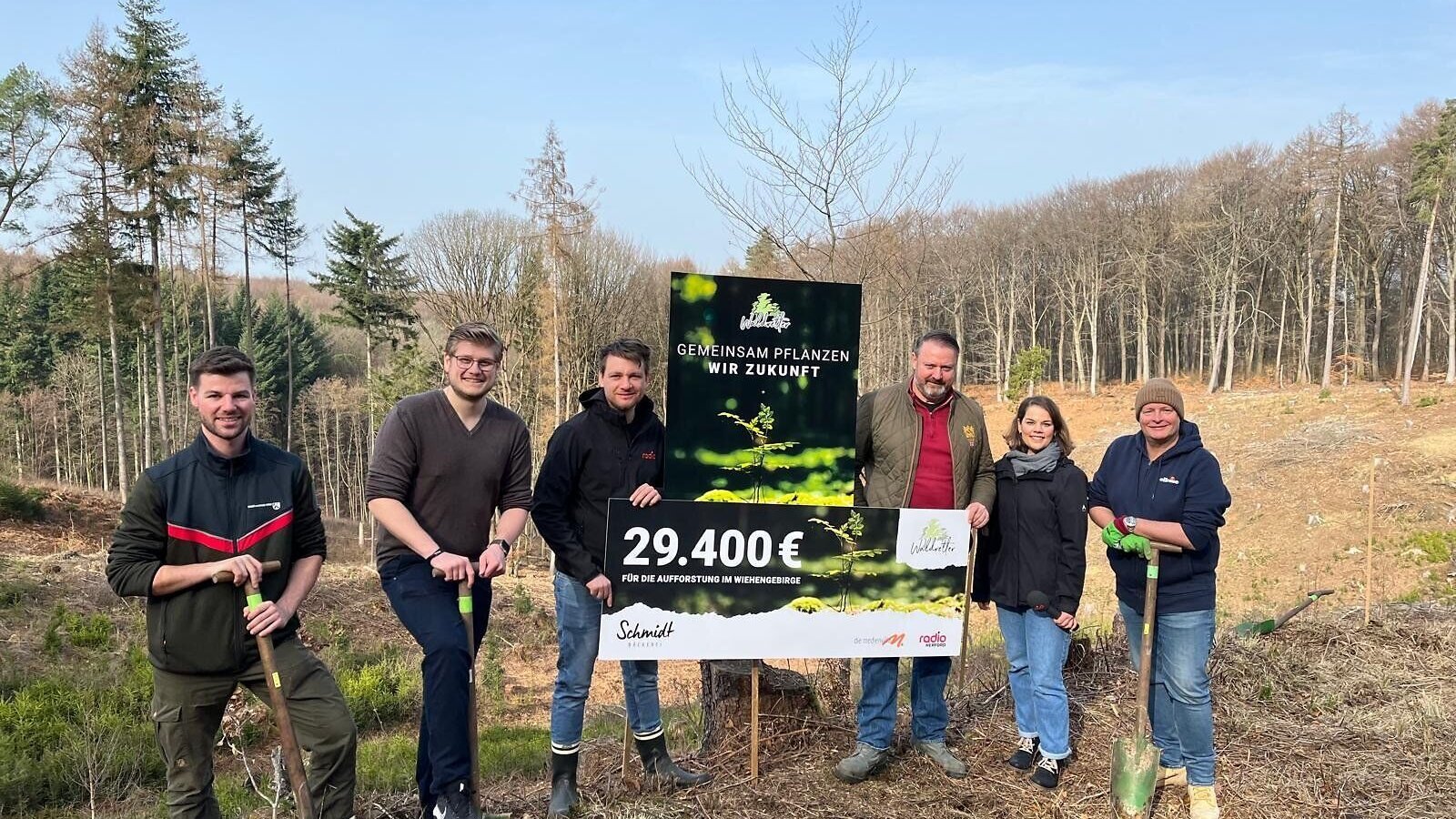 Die ersten Bäume sind gepflanzt. Gemeinsam mit der Bäckerei Schmidt und der Medienvilla und weiteren Unterstützern sind 29.400 Euro zusammengekommen. Und auch IHR seid ein Teil davon! Weil ihr so fleißig die leckeren Wiehenecken gekauft und verspeist habt wachsen jetzt die Bäume von morgen!