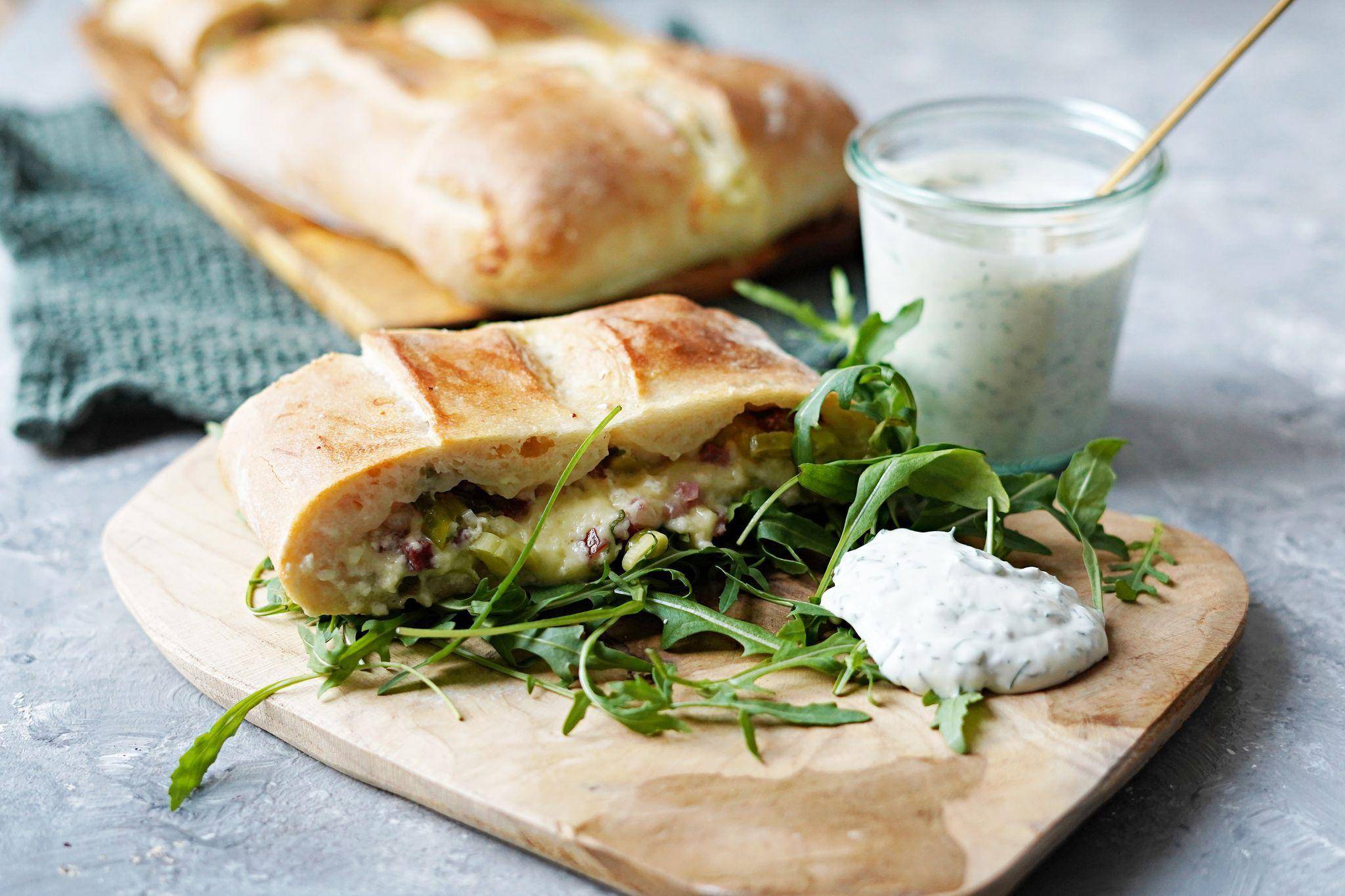 Mareike Pucka/biskuitwerkstatt.de/dpa-tmn | Das Handbrot mit der Füllung aus Schinken, Gouda und Frühlingszwiebeln schmeckt nicht nur, sondern weckt auch Festival-Erinnerungen.